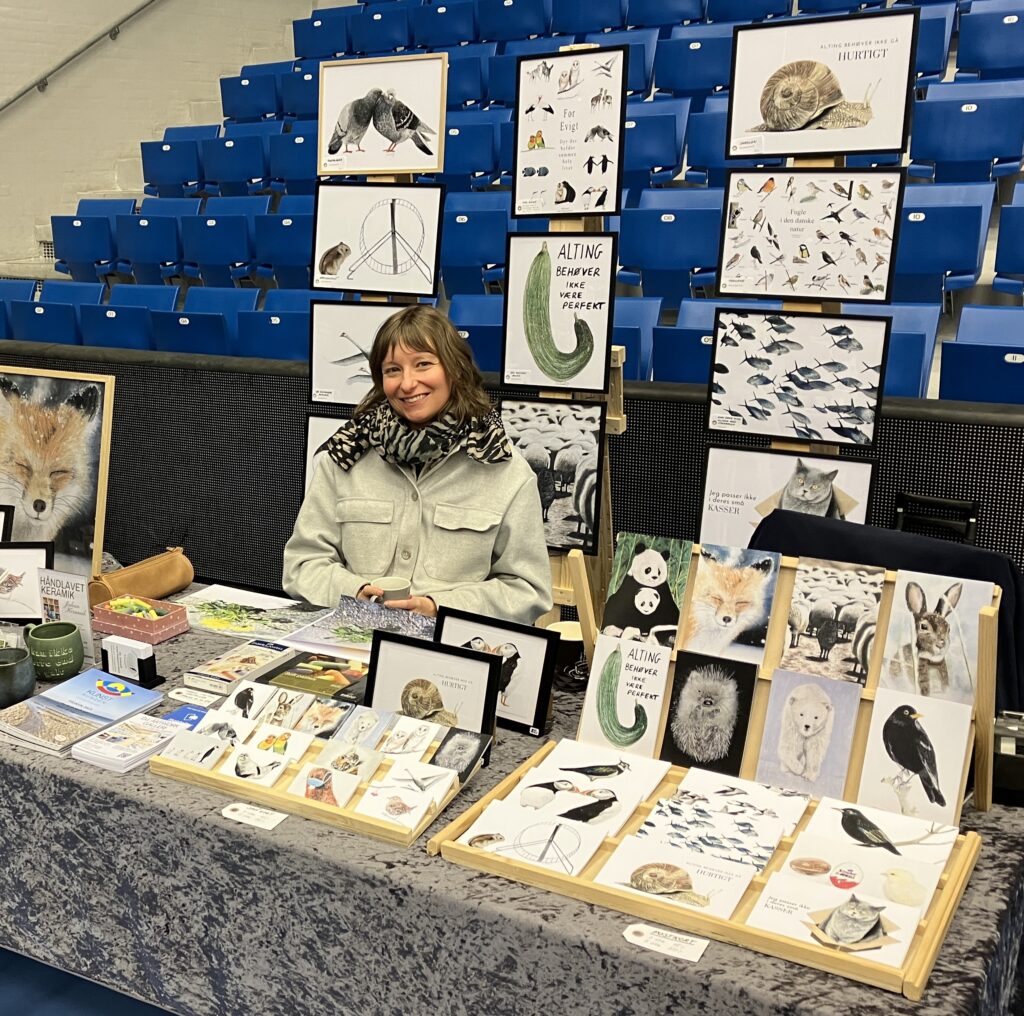DJ. Artwork er et univers af pastel. Kunsten skabes i hånden med pastelkridt, og alle plakater og kort er tryk af originale værker. Glæden for naturen og små hverdagsøjeblikke skinner igennem, gerne med en kommentar til tiden vi lever i.